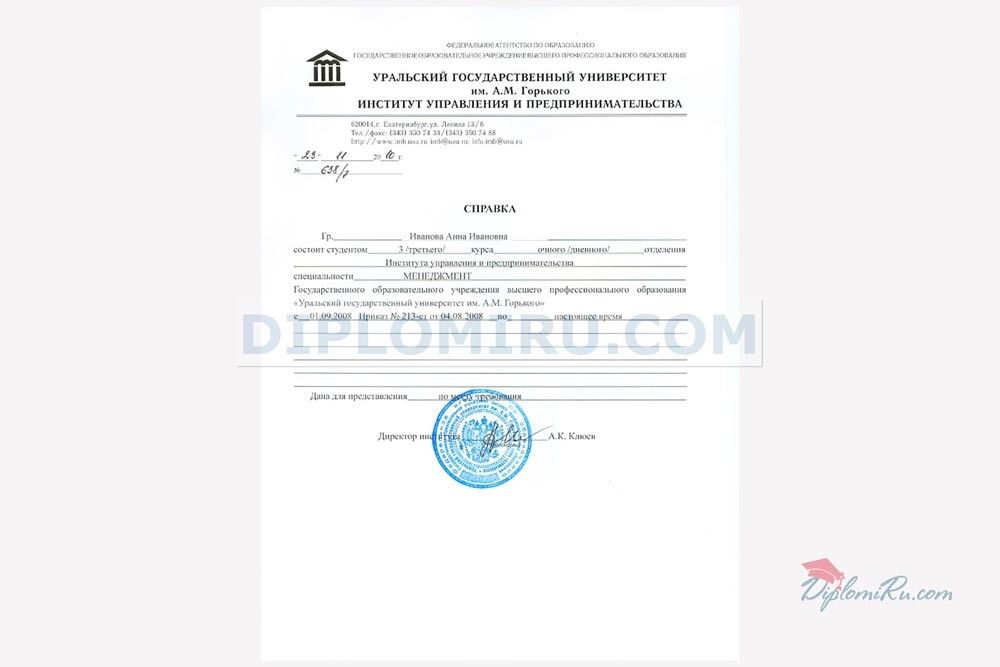 Справка об обучении в ВУЗе, техникуме, школе